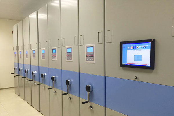 电动密集架的特征:1.节型、架宽、层数和列数可按用户需求选定
